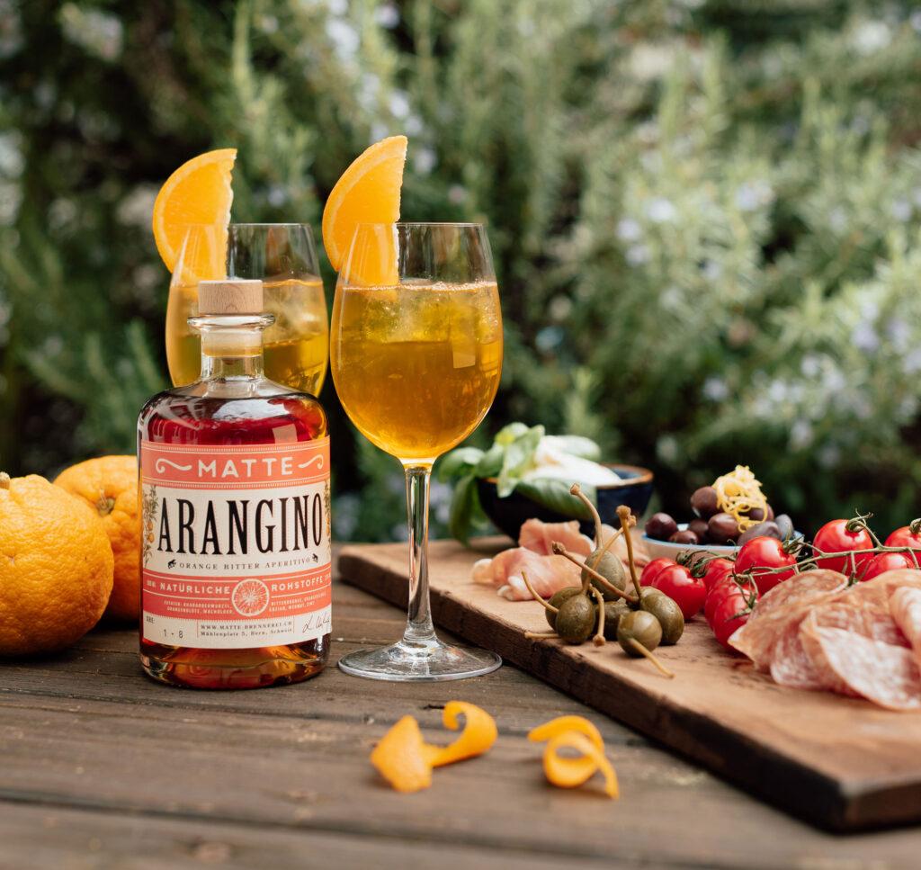 Apéro? Arangino! Der intensive Matte Arangino überzeugt mit seiner perfekten Harmonie aus bitteren, fruchtigen und süßen Noten. Passt zu jedem Apéro Plättli.