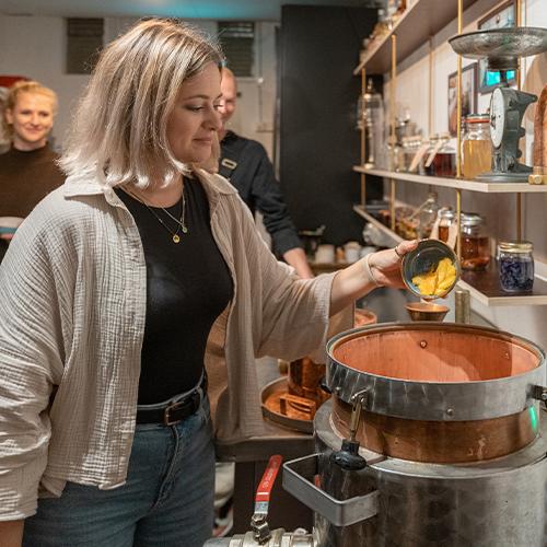 In der theoretischen Einführung erfährst du alles über die Rohstoffe, Herstellung und Sensorik von Gin. Anschliessend entwickelst du gemeinsam mit den anderen Teilnehmenden und unseren Brennmeisterinnen eine eigene Gin-Rezeptur. Während des gesamten Brennvorgangs kannst du unseren Expertinnen über die Schulter schauen und den Entstehungsprozess hautnah miterleben.